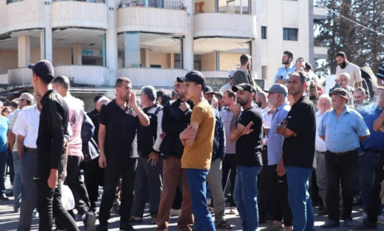 خلال وقفة احتـ ـجاجية مهـ ـجرو السويداء يطالبون بحق العودة